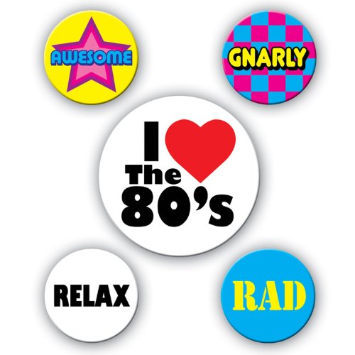 Best Buy 80's Party Buttons (asstd designs) Party Accessory (1 count) (5/Pkg)
